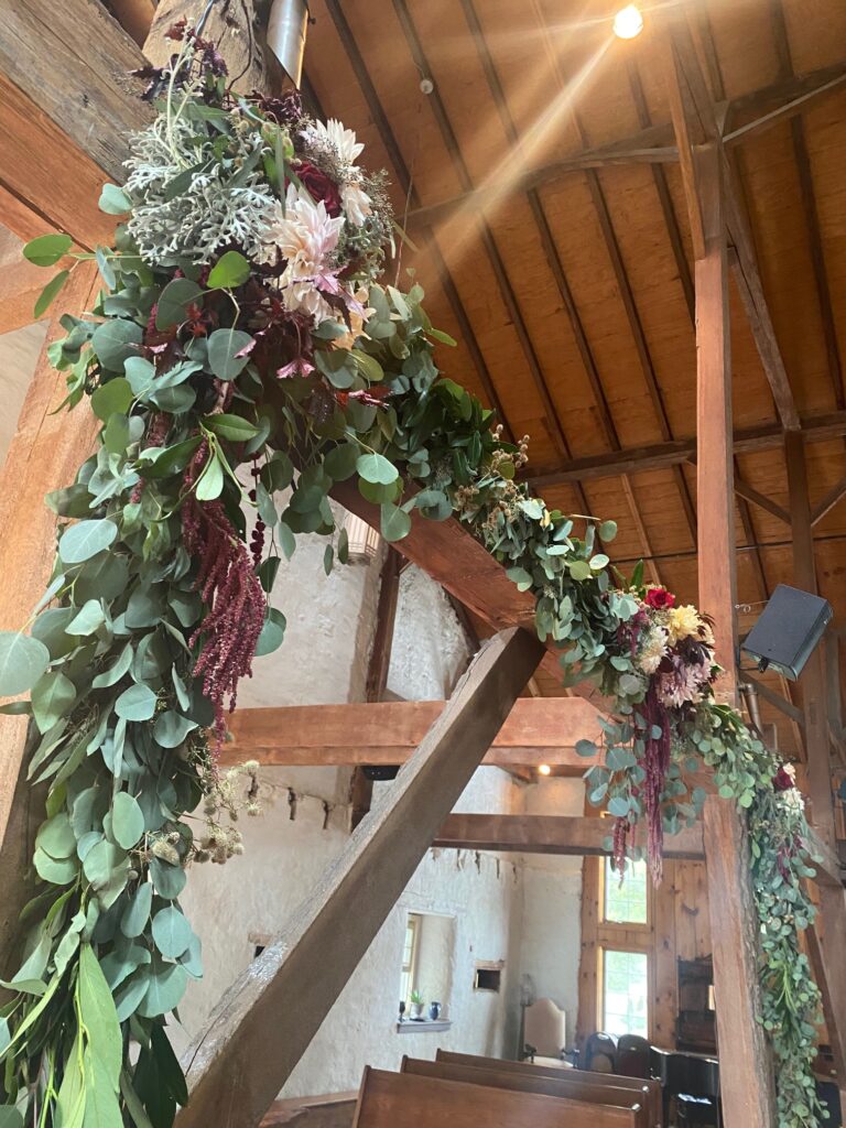 The Barn contains a restored 1700s dairy barn that serves as a sanctuary space for ceremonies.